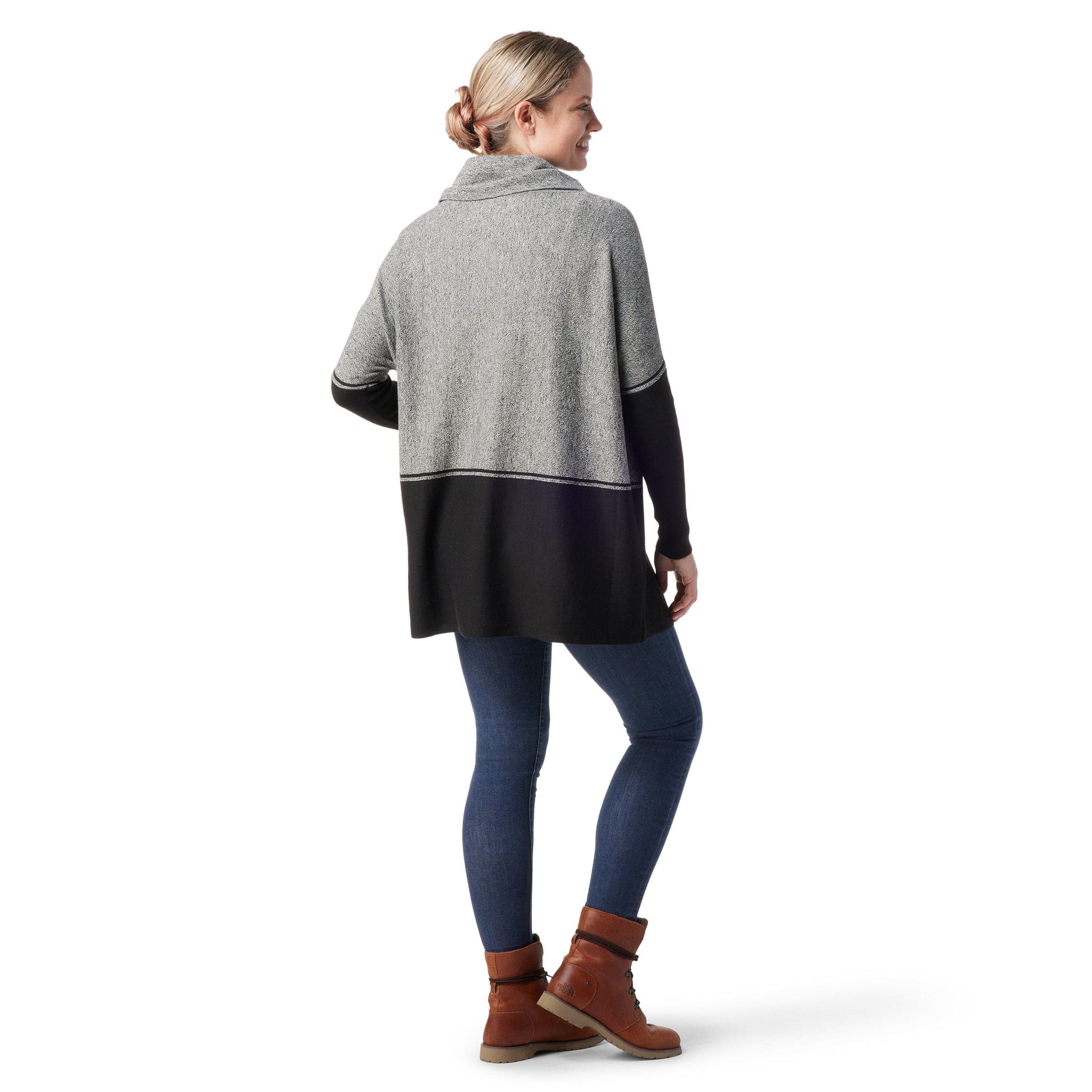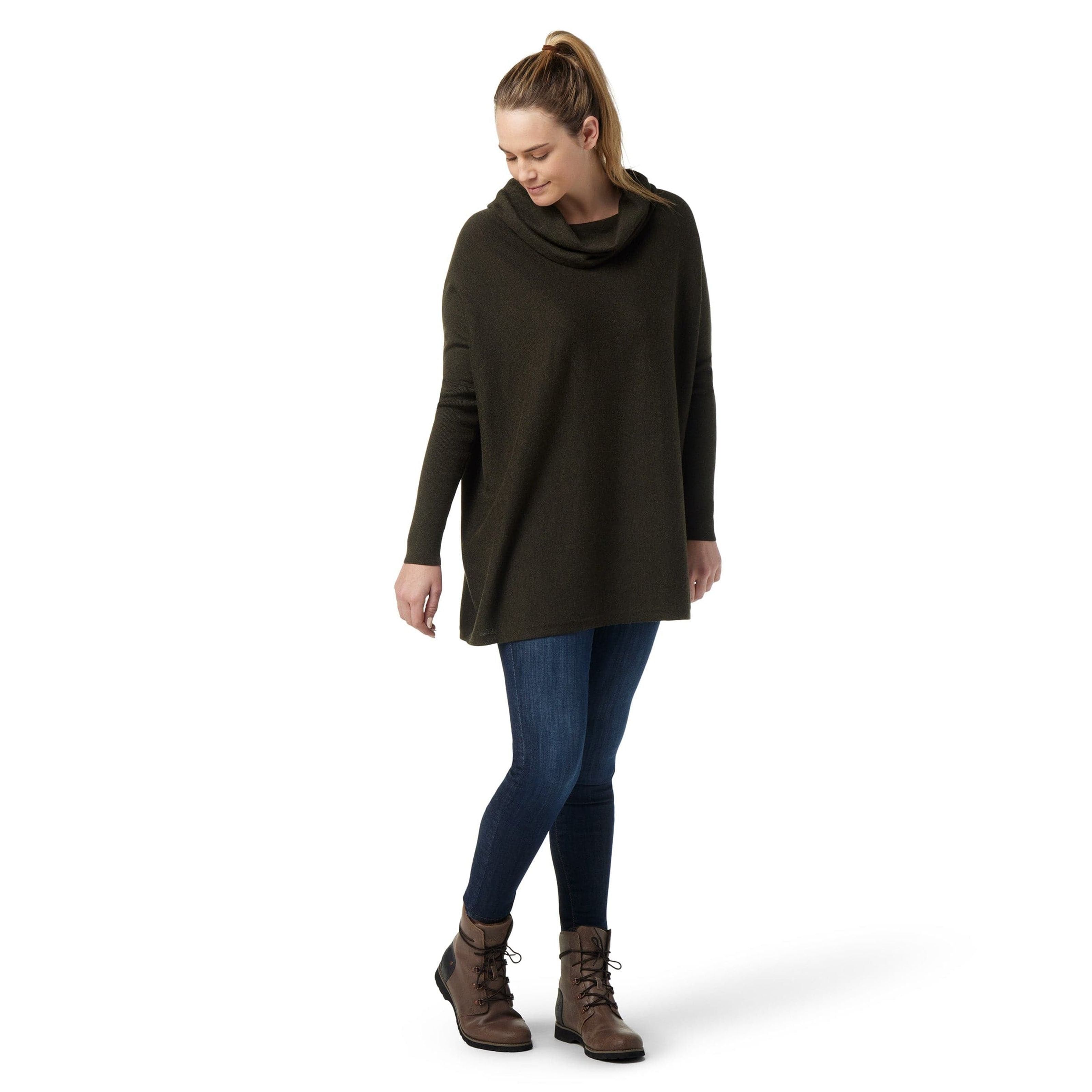 Simple yet elegant, Smartwool's Women's Edgewood Poncho Sweater is designed with a ribbed cowl neck and drop shoulder sleeves so you can freely move. And, because it's made with recycled polyester and responsibly sourced Merino wool, your environmental impact is reduced.