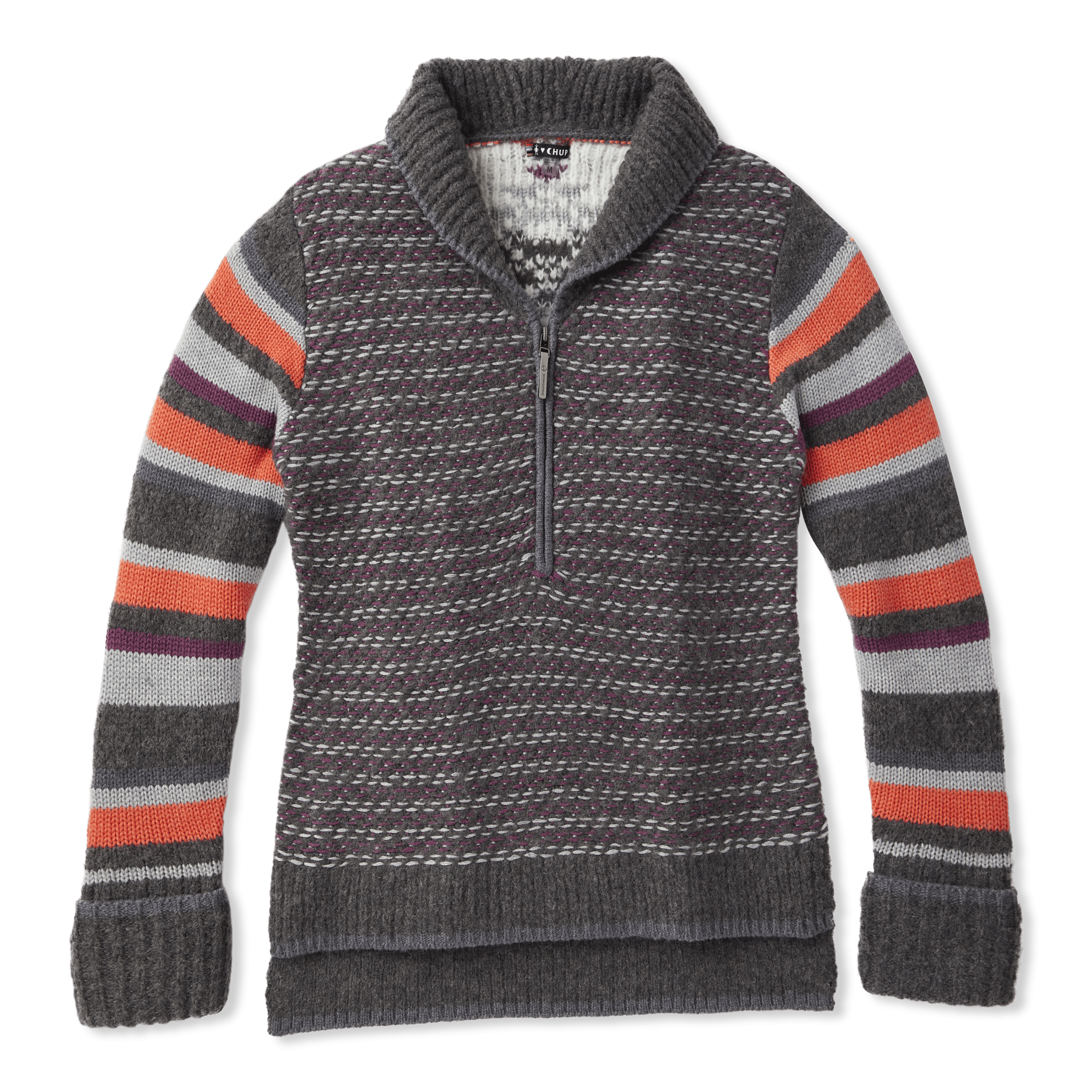 This luxurious, heavyweight sweater boasts bold, fun, eye-catching designs and unbelievable Merino comfort. Smartwool's Women's CHUP Potlach 1/2 Zip Sweater features a folded rib-knit cuff that allows you to roll down the cuffs for added warmth, while a rib-knit at the bottom hem adds length and comfort to this fun-loving sweater.